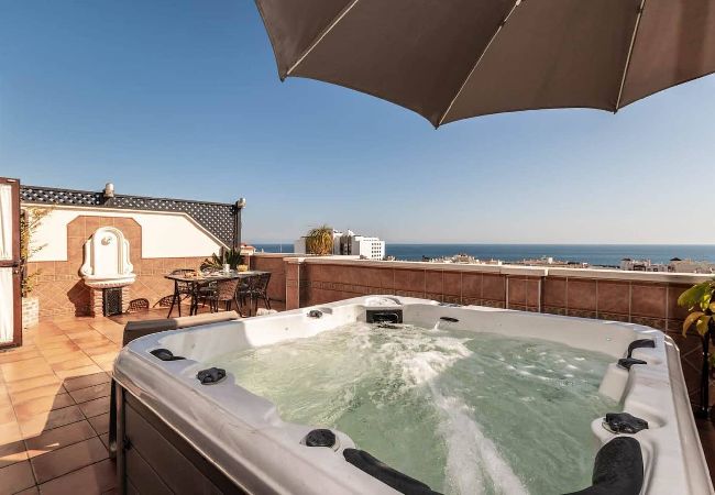 Private roof terrace with Jacuzzi and separate kitchen. Stunning views over Nerja, the sea and mountains. The property is furnished to a high standard and modern style.