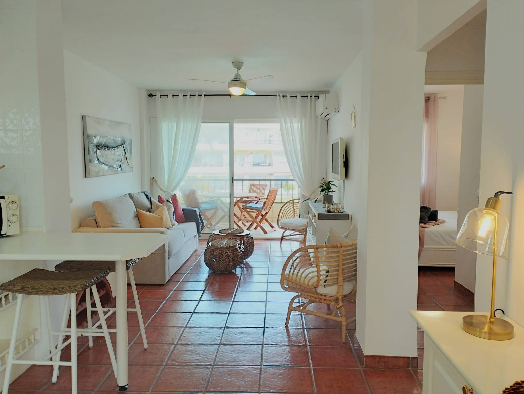 El apartamento en Nerja posee 2 dormitorio(s) y capacidad para 4 personas. Alojamiento de 65 m². Dispone de ascensor, terraza, lavadora, plancha, acceso internet (wifi), secador, aire acondicionado en todo el alojamiento, piscina comunitaria, 1 Televisor.La cocina, está equipada con nevera, microondas, horno, congelador, utensilios/cocina, cafetera, tostadora y hervidor de agua.