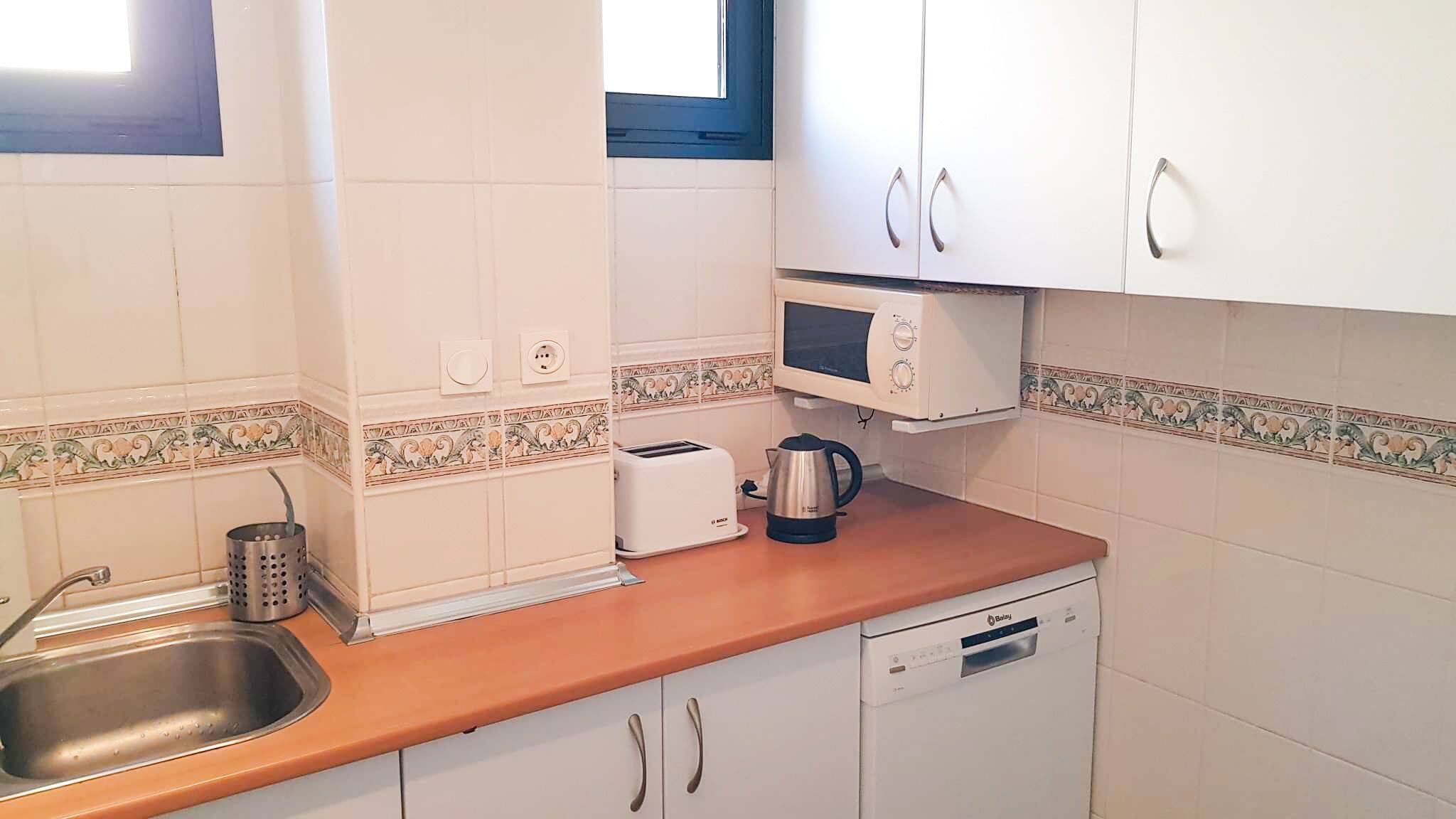 La cocina, está equipada con nevera, microondas, horno, lavavajillas, utensilios/cocina, cafetera y tostadora.