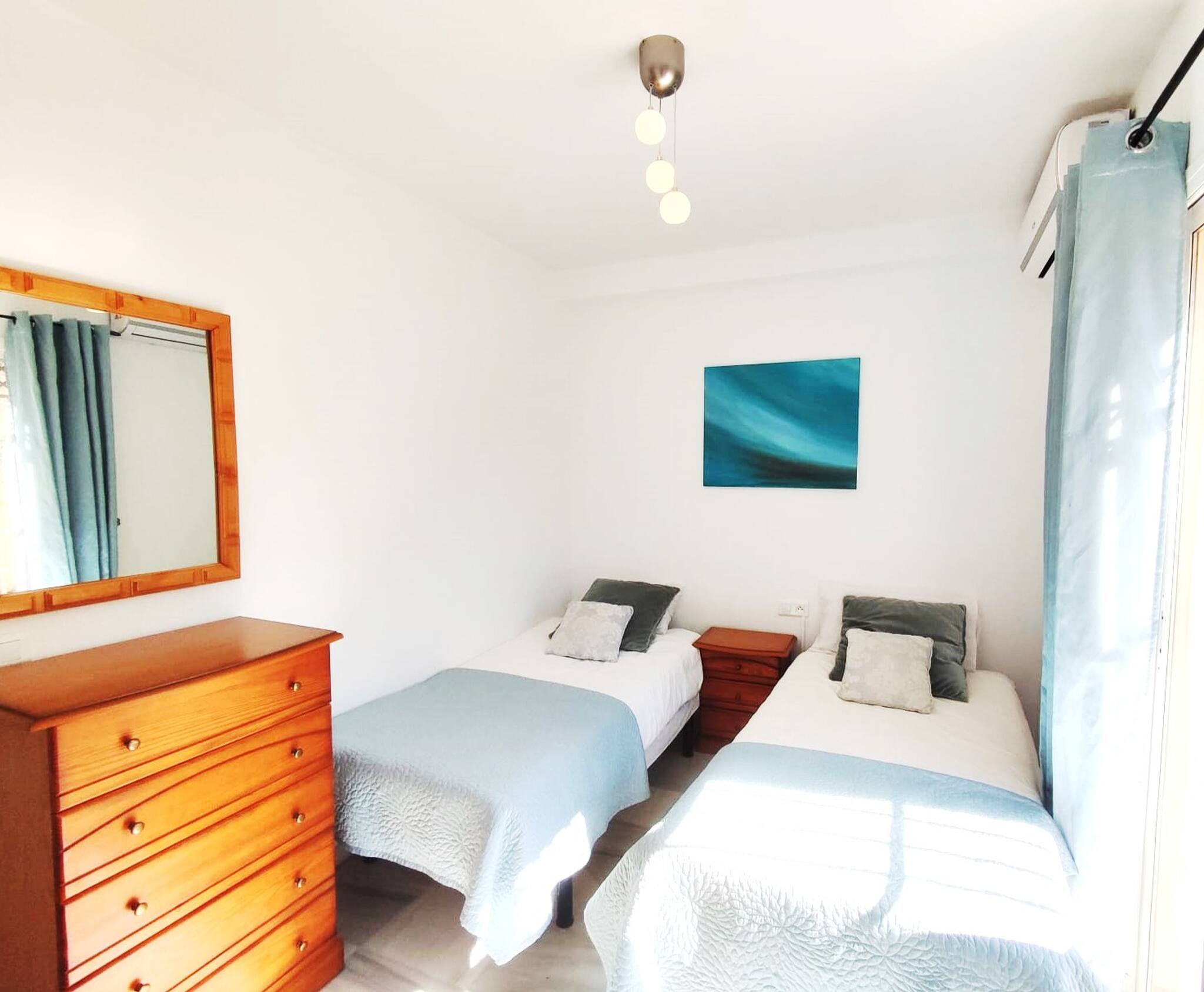 La casa adosada en Nerja posee 2 dormitorio(s) y capacidad para 4 personas. Alojamiento de 90 m². Dispone de 20 m² de terraza, lavadora, barbacoa, plancha, secador, balcón, aire acondicionado en todo el alojamiento, piscina comunitaria, 1 Televisor.La cocina independiente, eléctrica, está equipada con nevera, microondas, horno, congelador, vajilla/cubertería, utensilios/cocina, cafetera, tostadora y hervidor de agua.