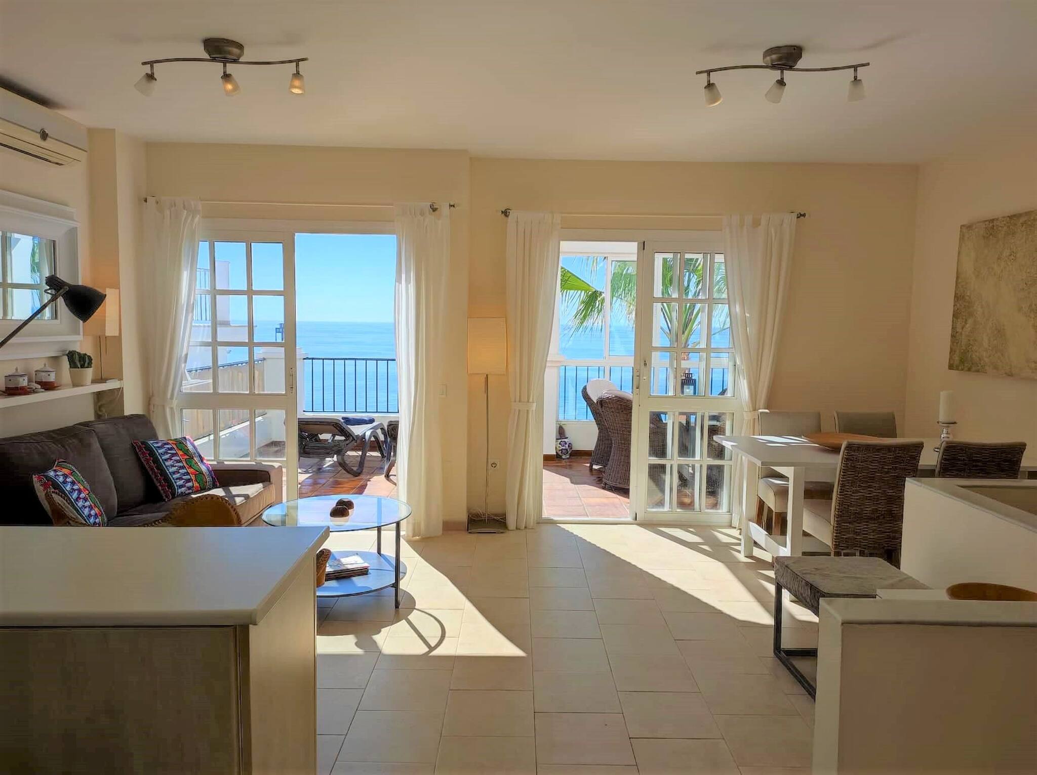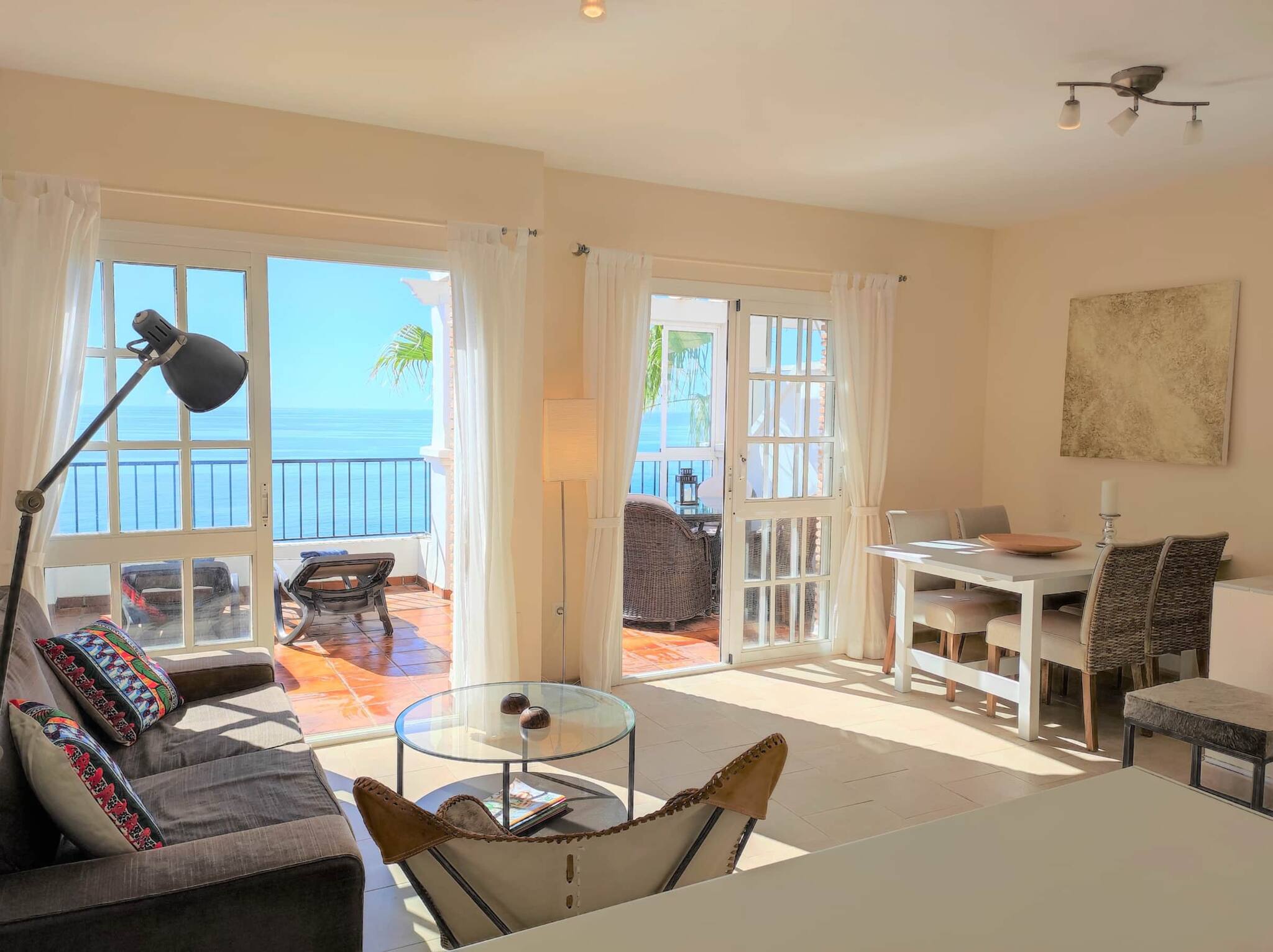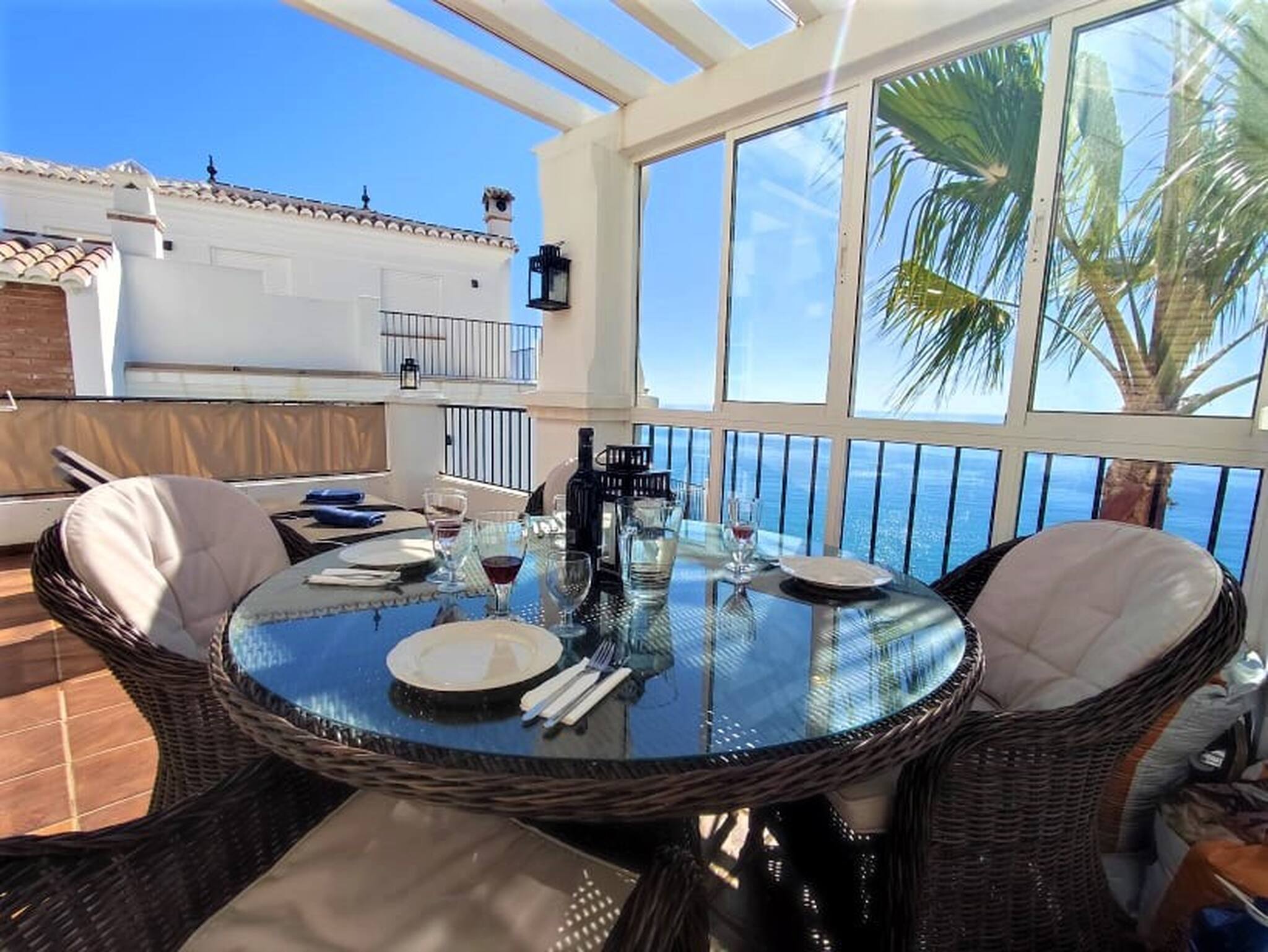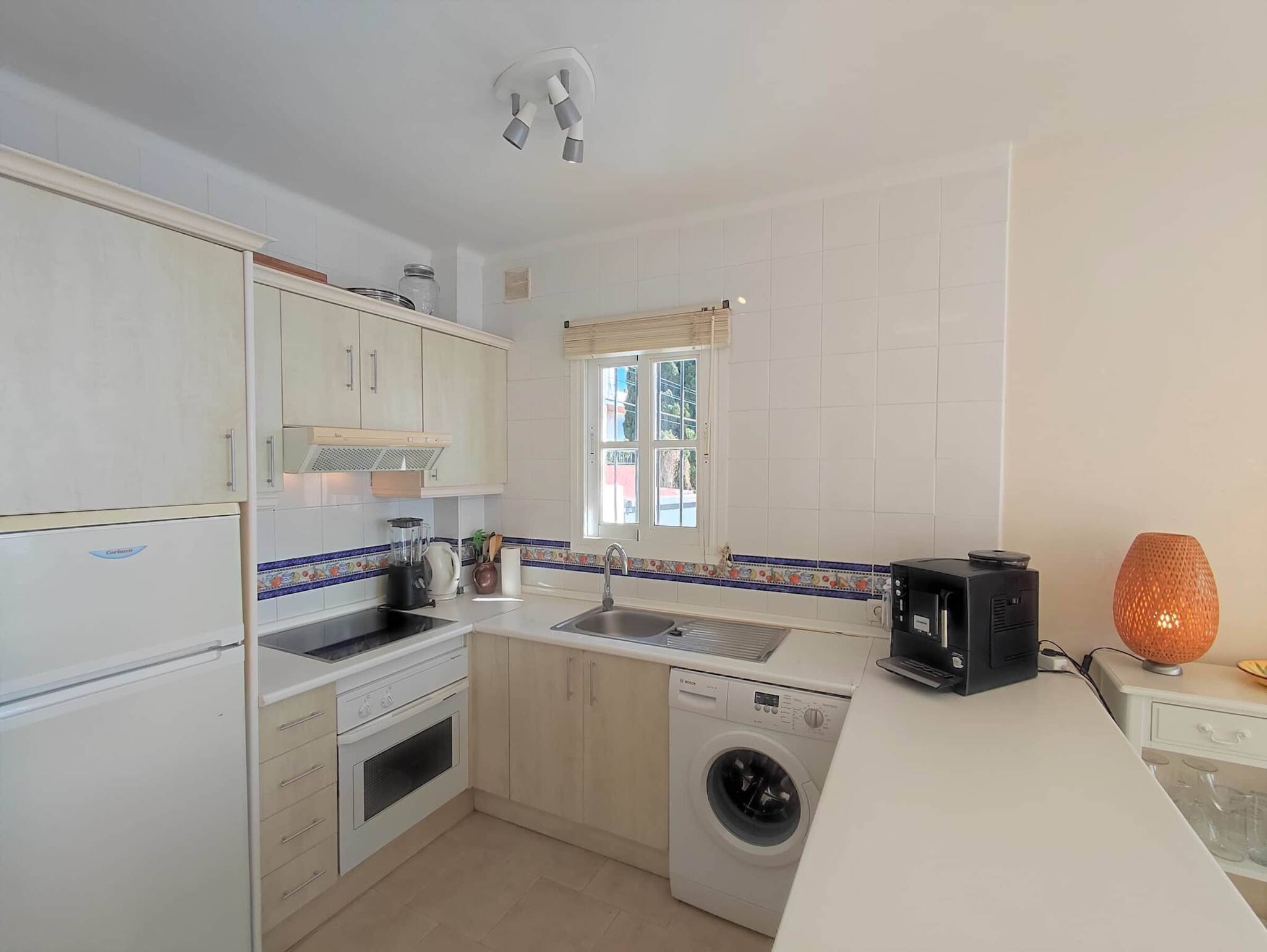 La casa adosada en Nerja posee 2 dormitorio(s) y capacidad para 4 personas. Alojamiento de 90 m². Dispone de 10 m² de terraza, lavadora, plancha, secador, piscina comunitaria, 1 Televisor, tv satelite (Idiomas: Inglés).La cocina americana, eléctrica, está equipada con nevera, horno, congelador, lavavajillas, vajilla/cubertería, utensilios/cocina, cafetera, tostadora y hervidor de agua.