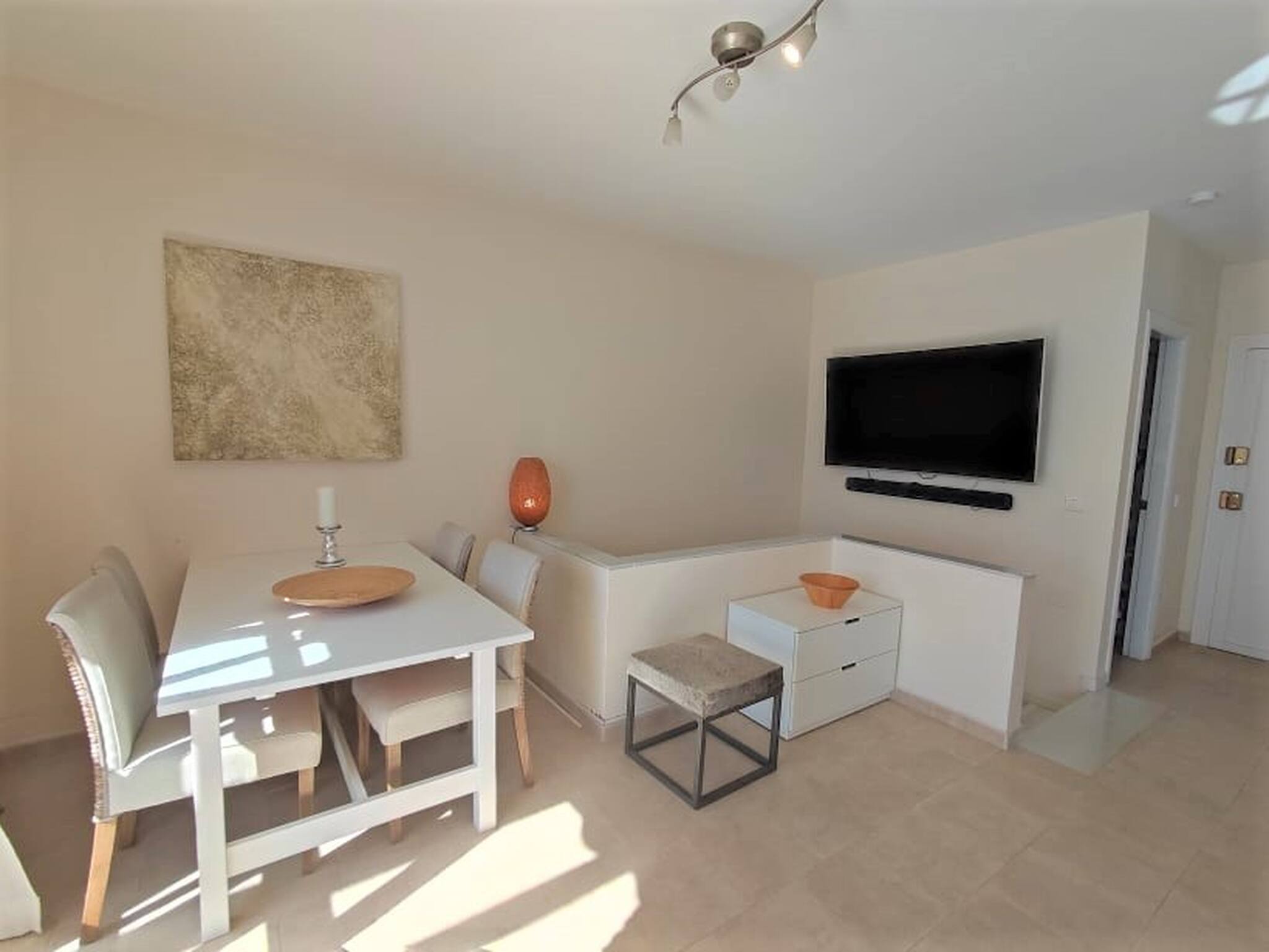 Dispone de 10 m² de terraza, lavadora, plancha, secador, piscina comunitaria, 1 Televisor, tv satelite (Idiomas: Inglés).