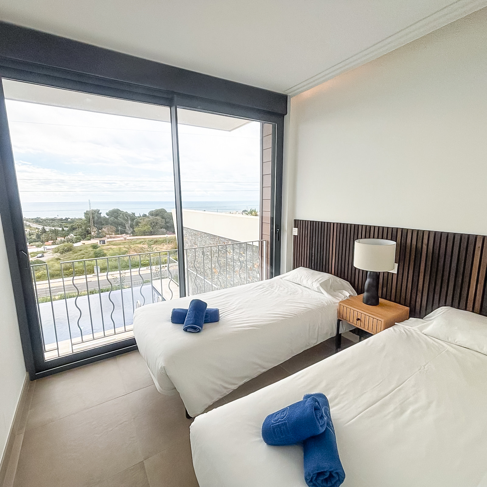 Dormitorio principal con vistas al mar y baño privado (ducha de paseo, lavabo, inodoro)