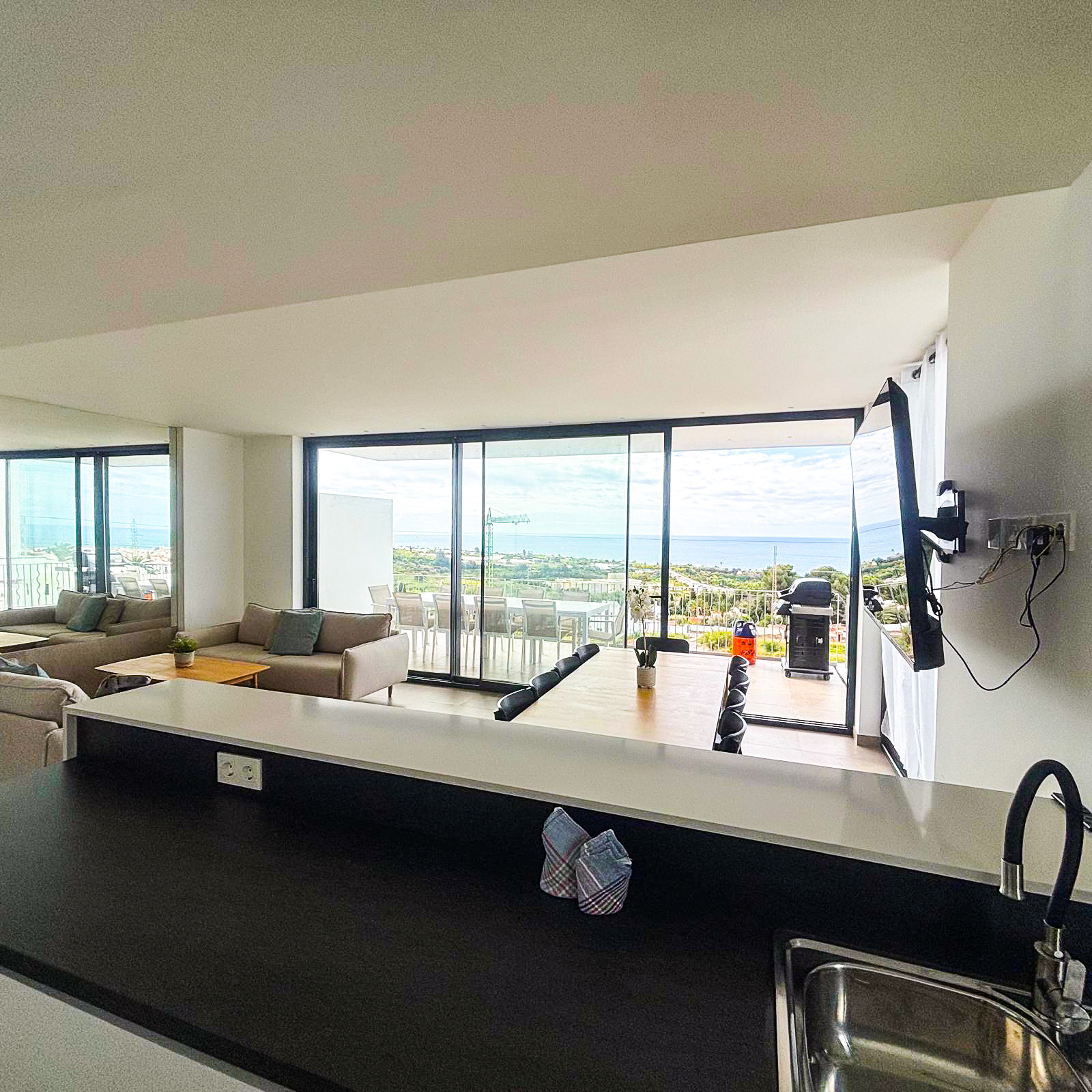 Entre y sea recibido por un área de estar abierta y luminosa con hermosas vistas al mar. El diseño es fresco, moderno y diseñado para su comodidad.