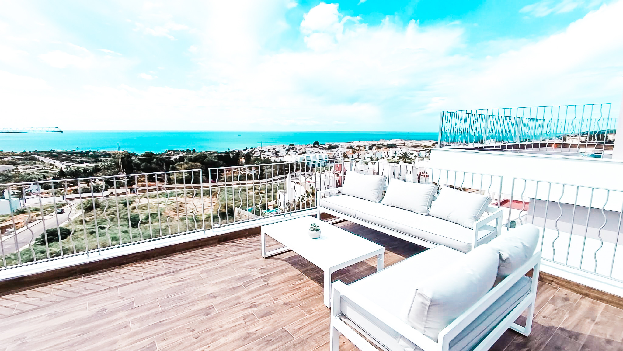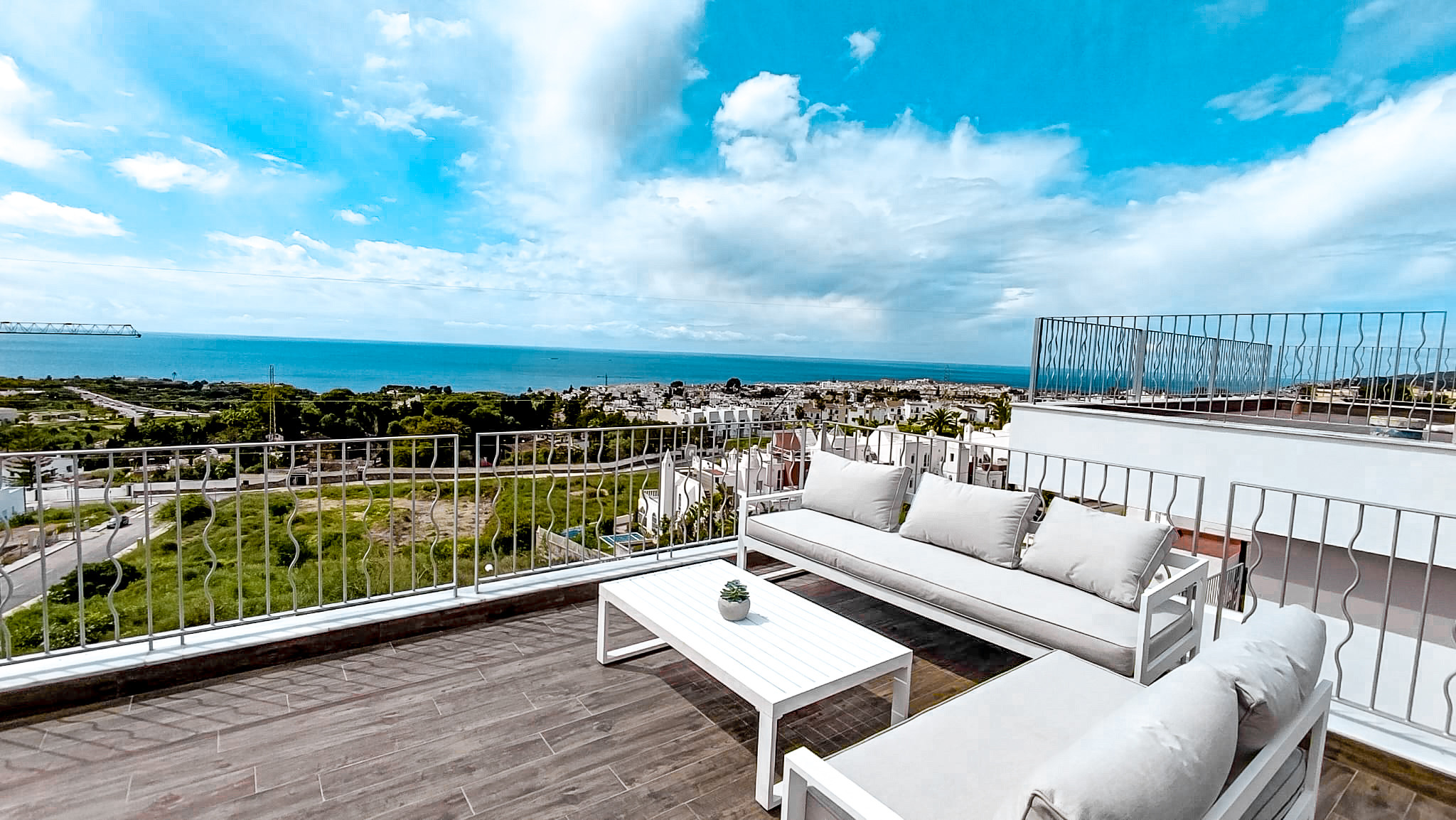 Sube a la terraza en la azotea y disfruta de vistas panorámicas de 360 grados del mar y las colinas ondulantes. Es el lugar ideal para relajarse y contemplar la puesta de sol, absorbiendo la belleza del entorno.
