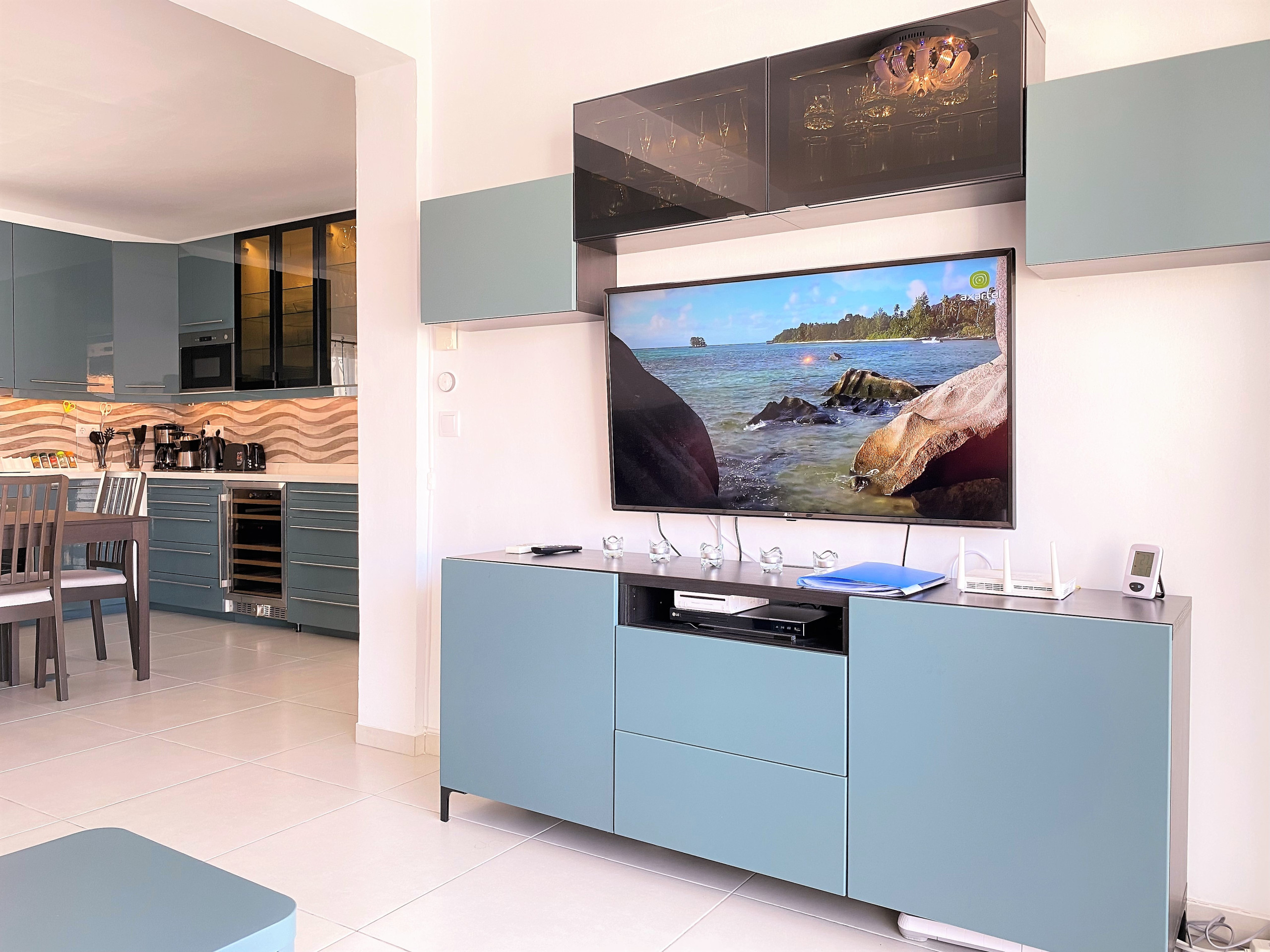 Cocina moderna y zona de estar