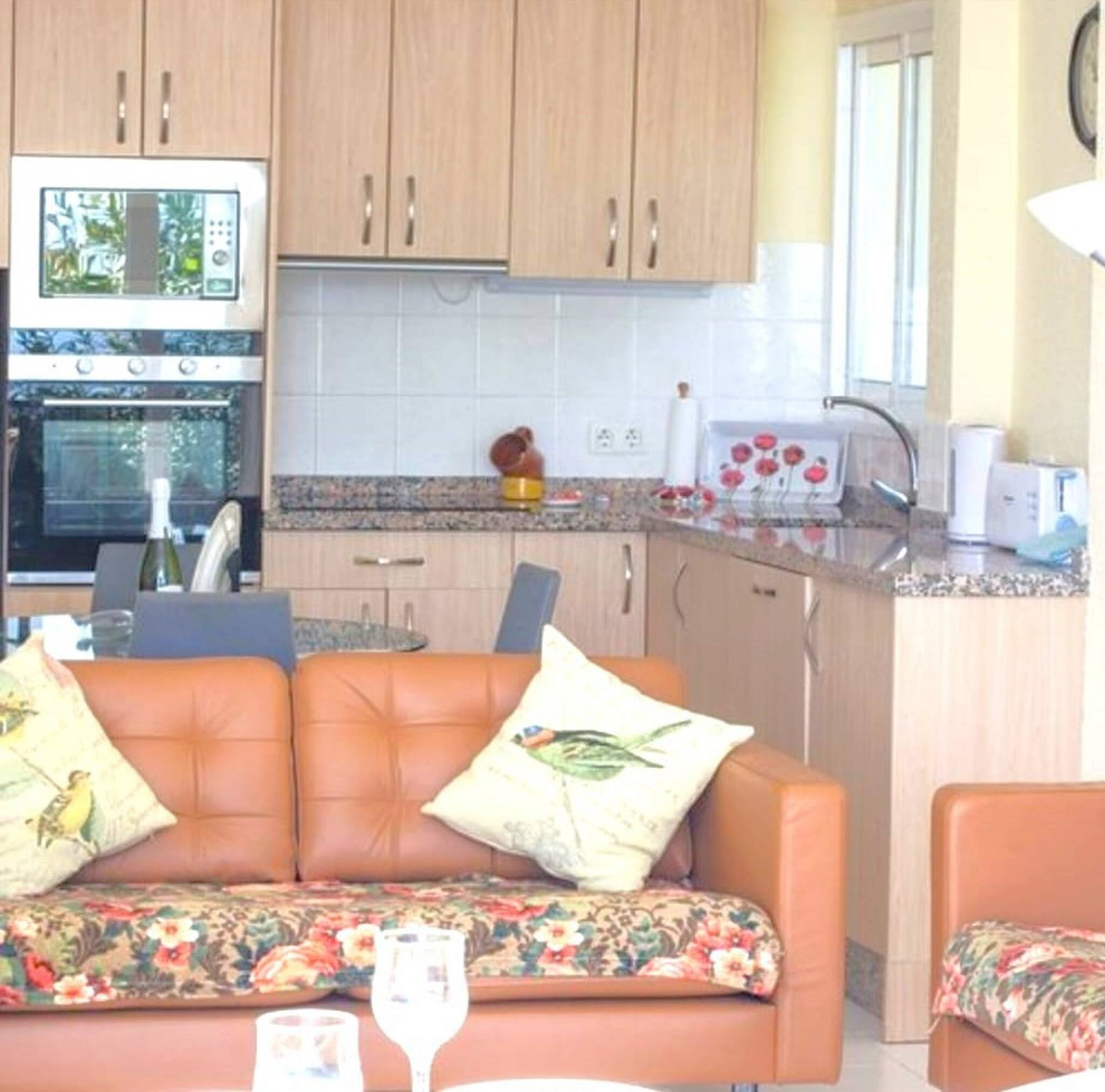 A charming and homely decorated one bedroom apartment located in the popular Urbanisation of Capistrano Village. The apartment provides a around 20m2 south facing terrace with sea views. The large communal pool with snack bar and children's pool is just a few minutes walk away. The spacious open plan living area provides a sofa bed can be prepared for two additional persons. AC in the living room Internet incl. in the rental price.