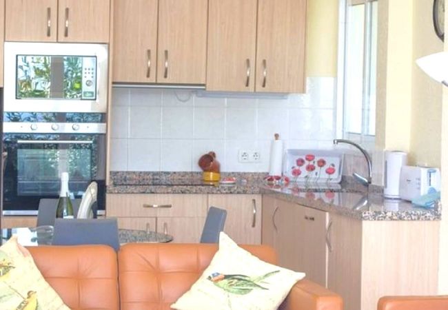 Less than a 5 min drive from Nerja center, known for the beautiful garden areas, the Urbanisation Capistrano Pueblo is the ideal holiday resort. The apartment provides one bedroom, a modern bathroom with a large walk-in shower and a fully equipped kitchen connected to the living room with a large dining table, chimney and access to a private south facing terrace.