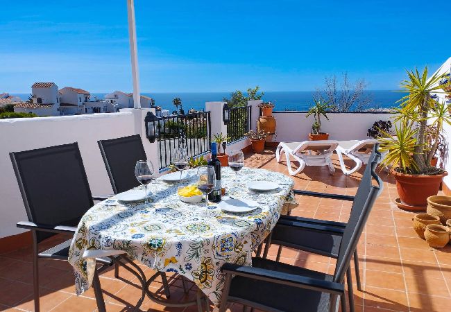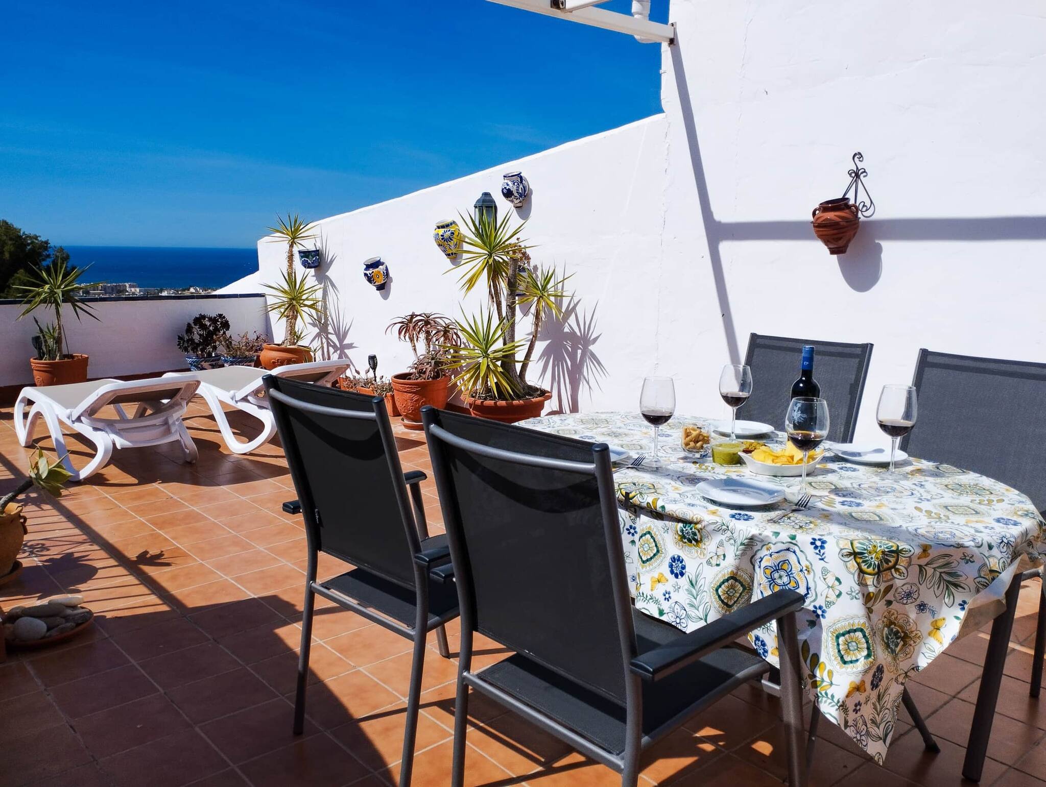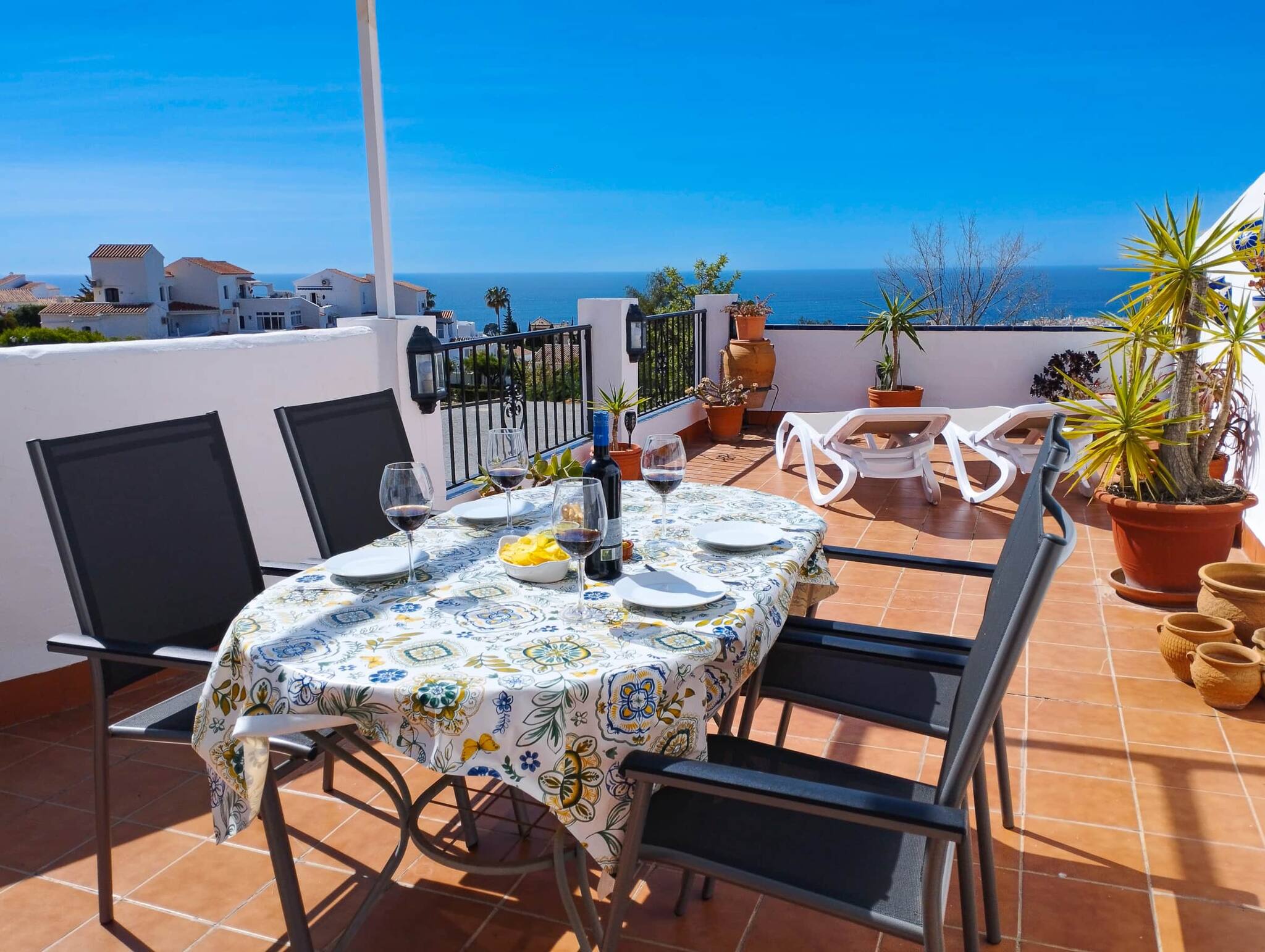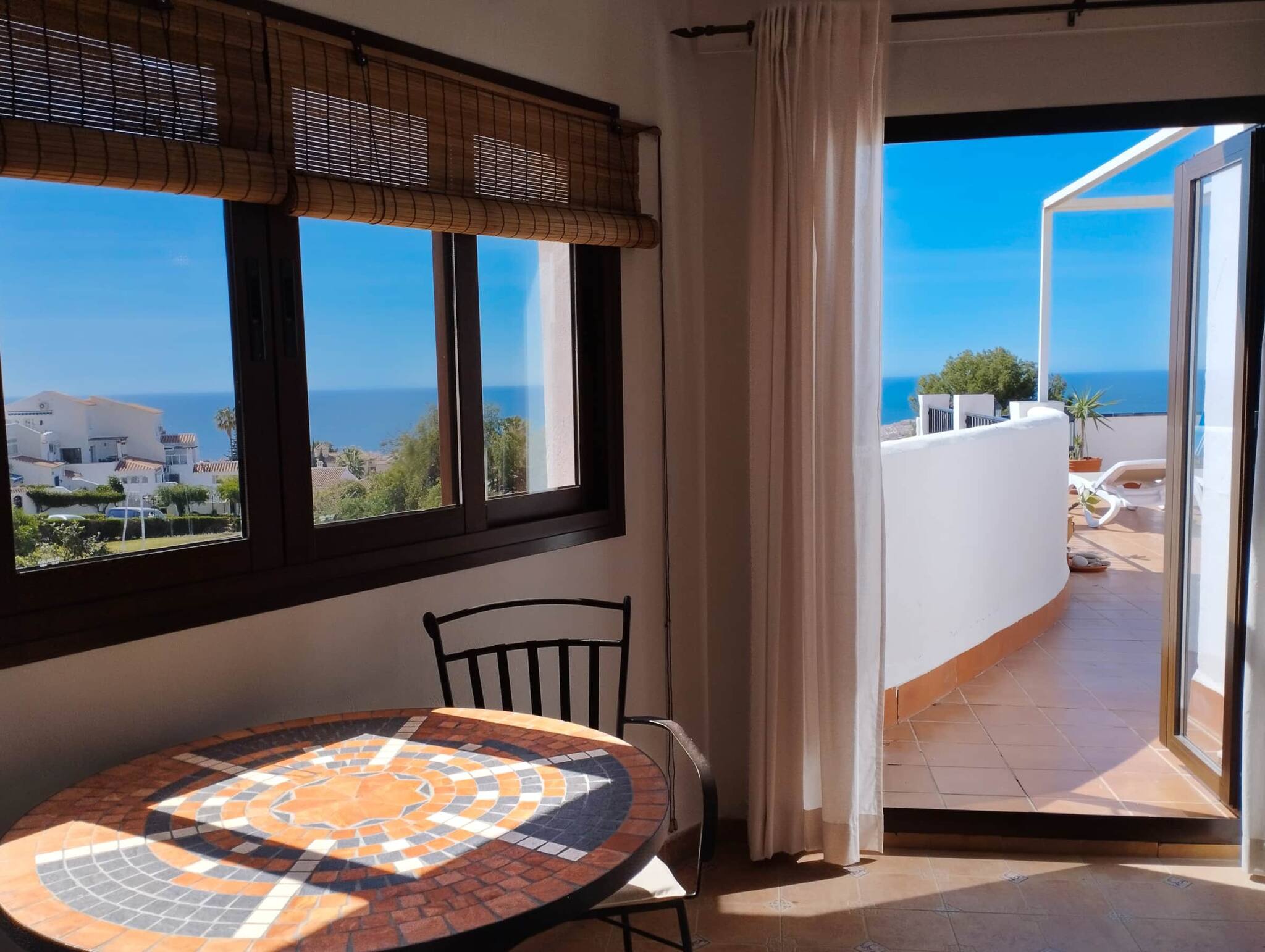 The nearest supermarket and bus stop for the shuttle bus to Nerja is around 10 min walk away. A tennis and padel court is also close by. The property is approached via 4 external steps and provides free street parking just in front of the apartment.