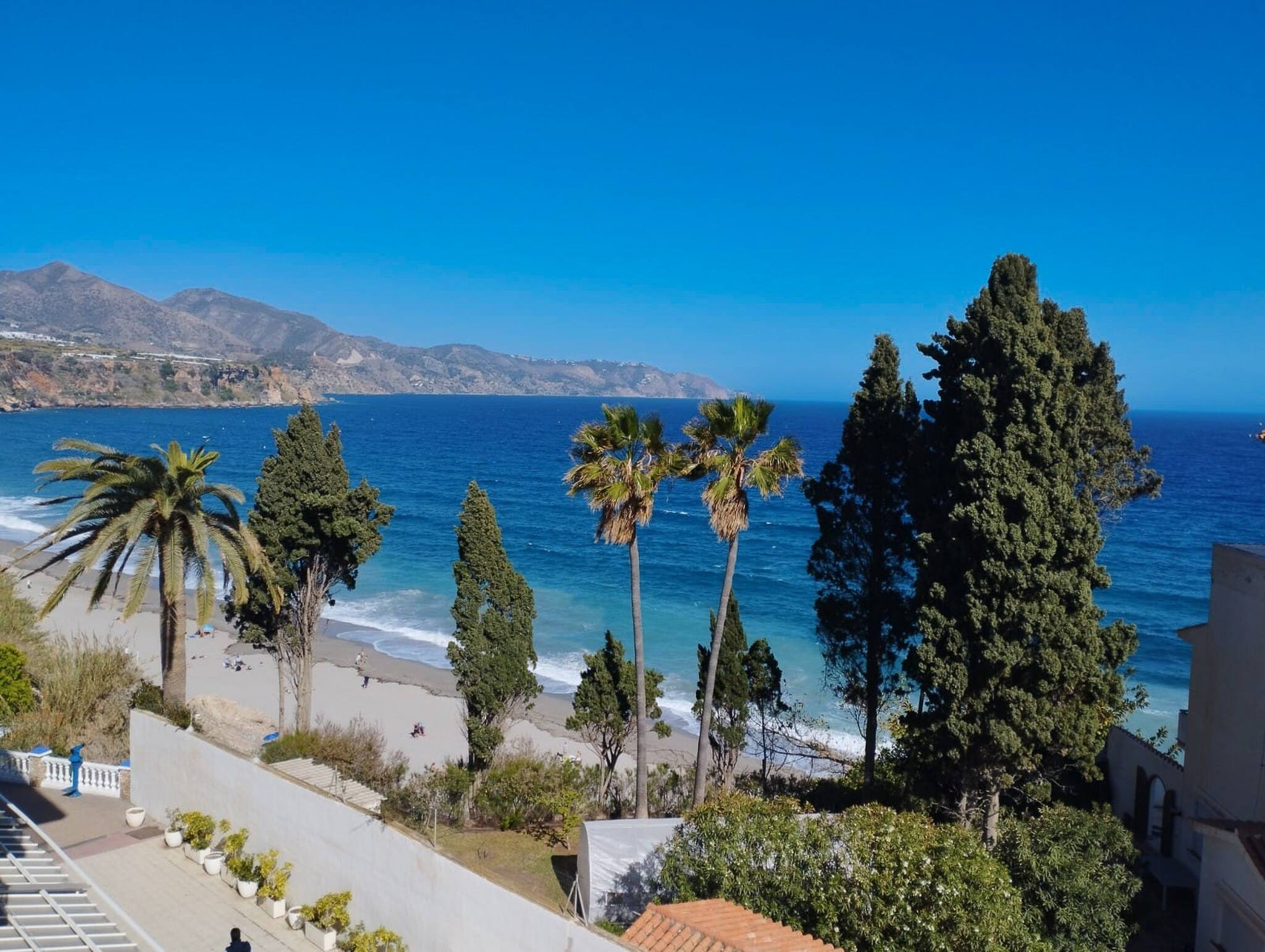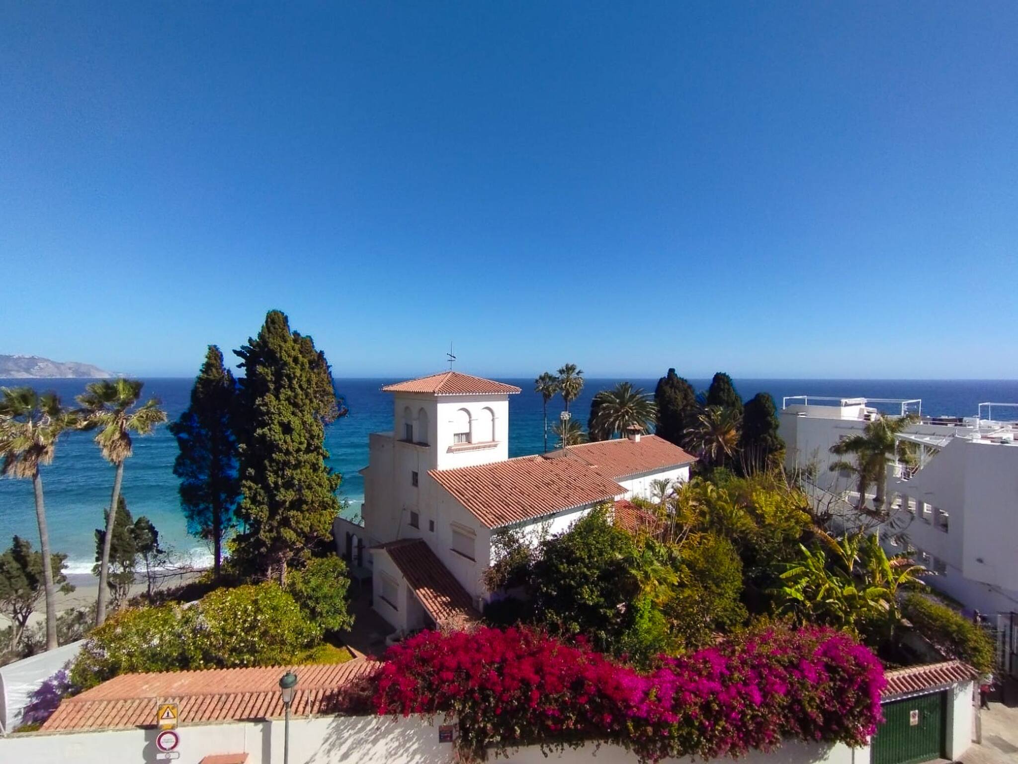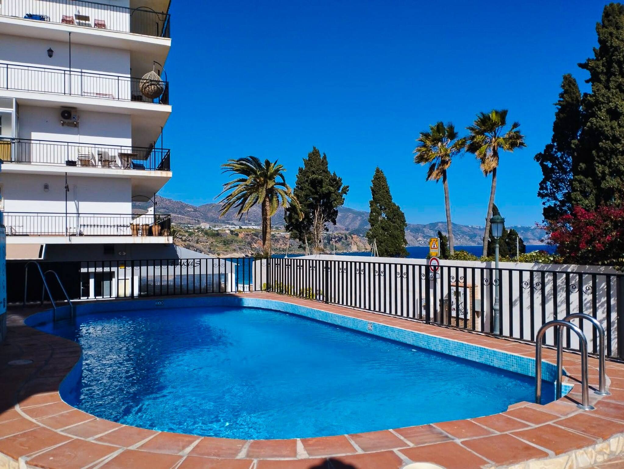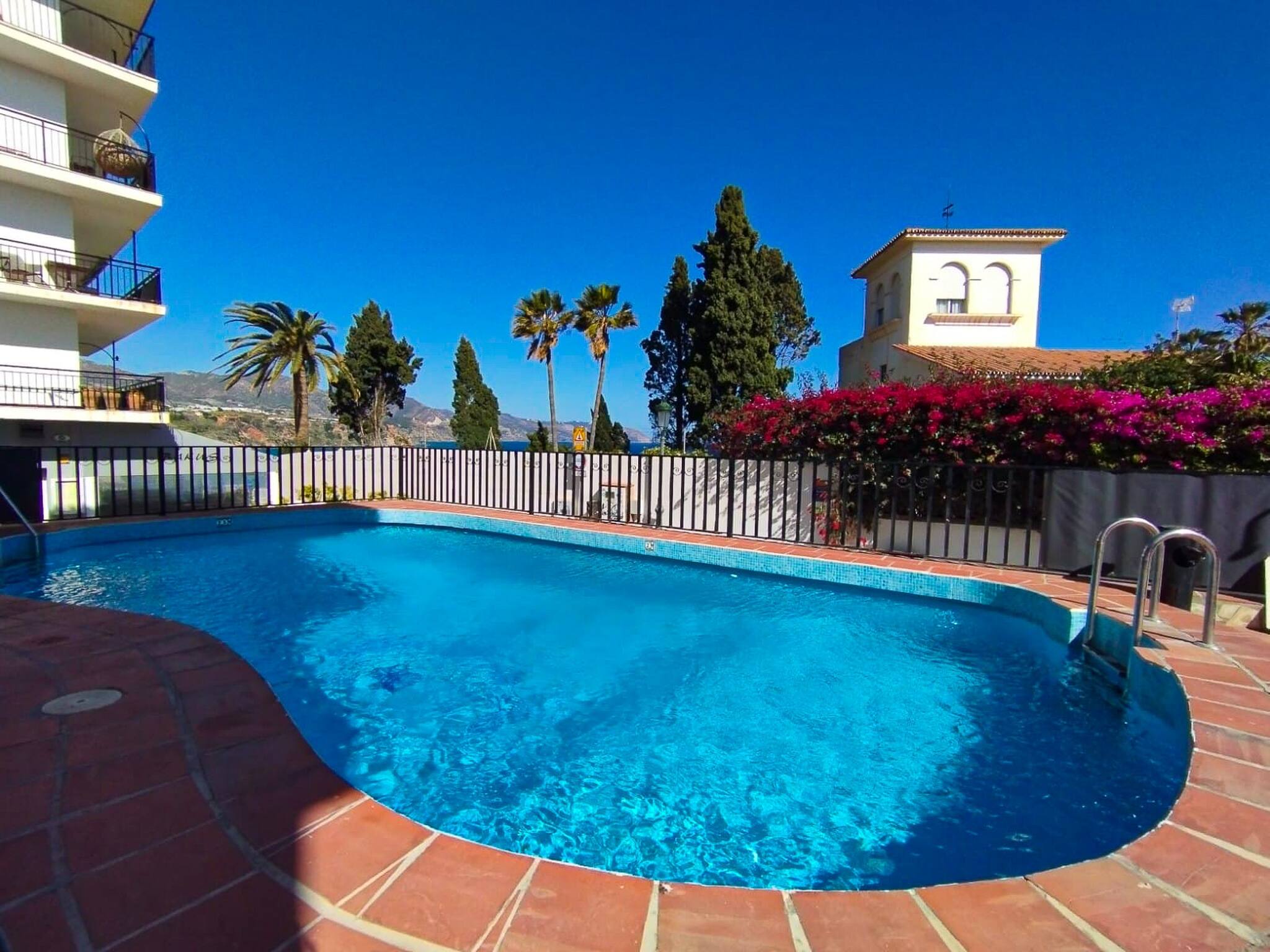 The nearest supermarket and bus stop for the shuttle bus to Nerja is around 10 min walk away. A tennis and padel court is also close by. The property is approached via 4 external steps and provides free street parking just in front of the apartment.