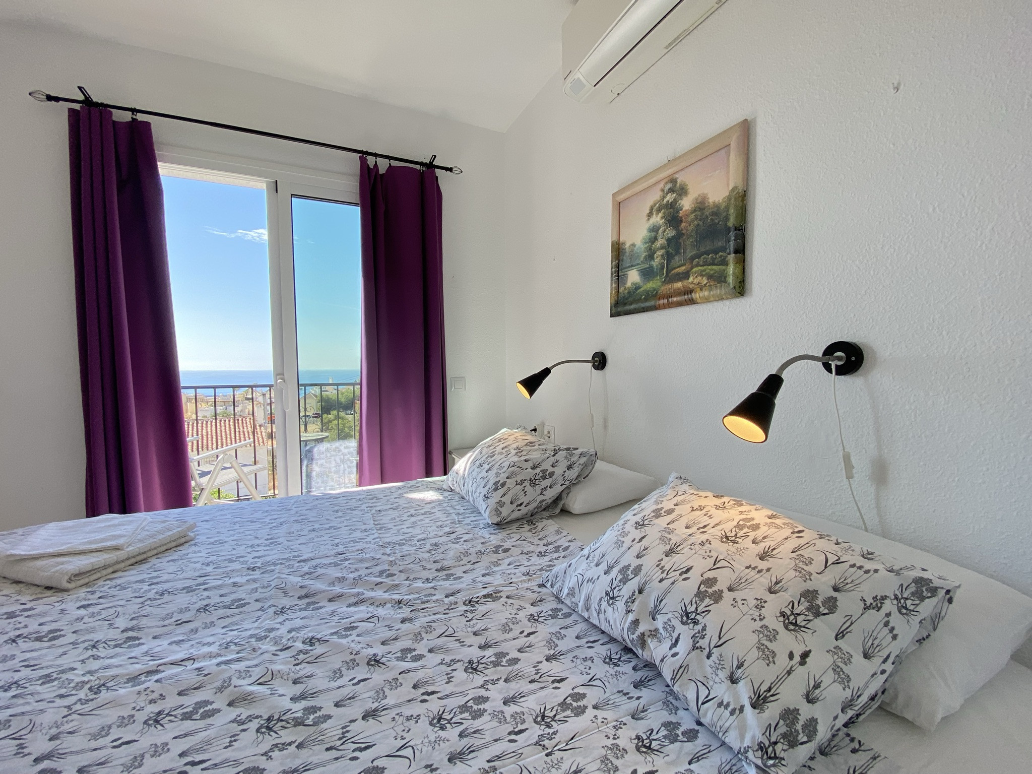 Beautiful furnished 3-bedroom townhouse (3 bedrooms + living room) offering spectacular Mediterranean views, a private pool, and multiple outdoor spaces